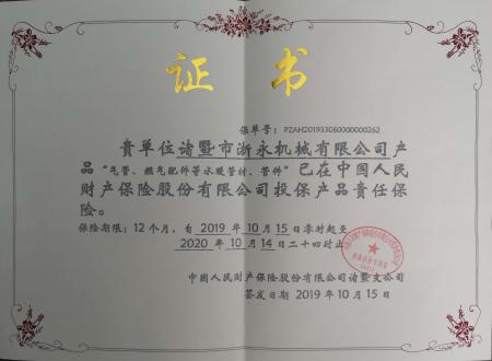 公司產(chǎn)品保險(xiǎn)證書